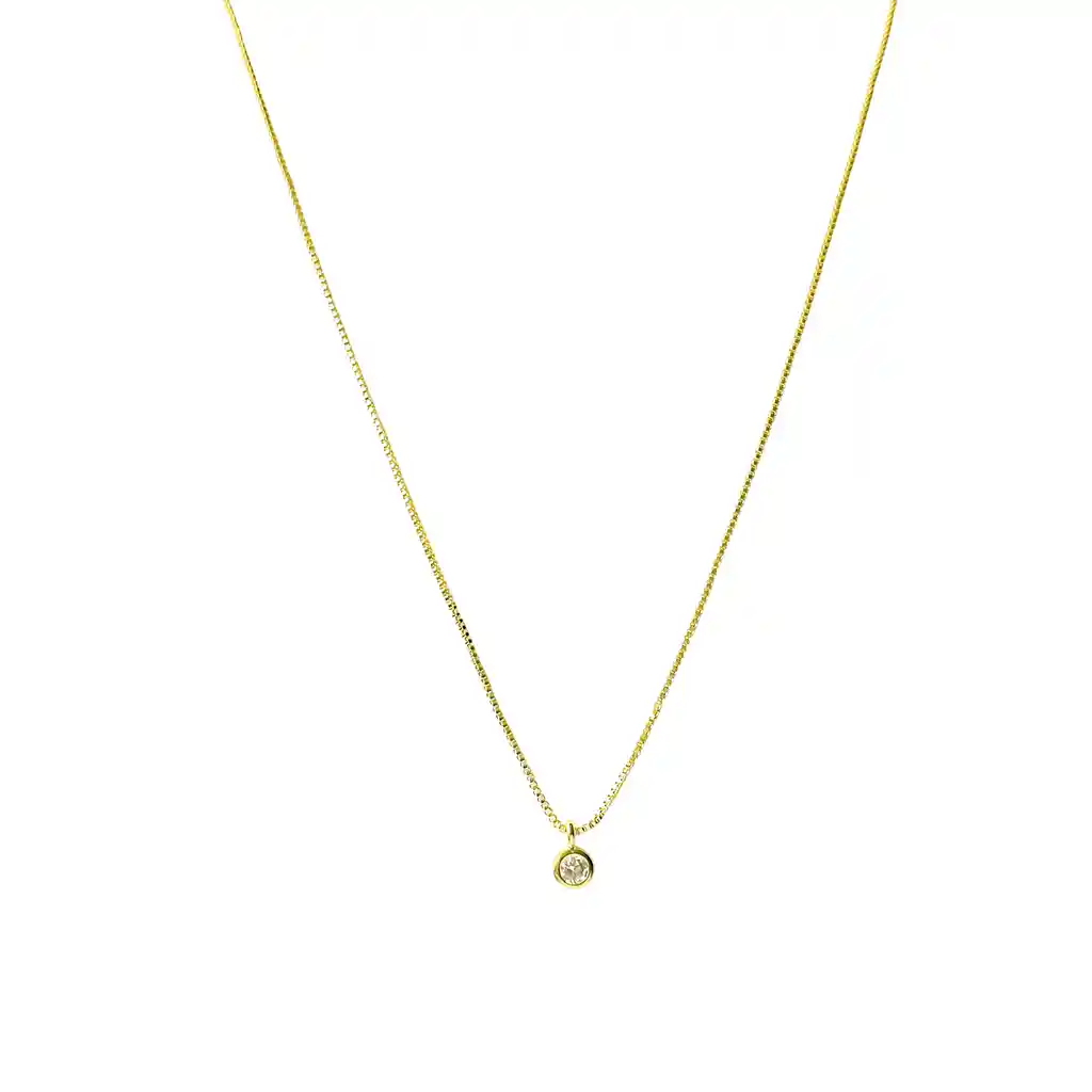Collar Punto de Luz. Un toque de brillo sutil y sofisticado. Con borde Enchapado en Oro 18K y cadena veneciana, es hipoalergénico y libre de níquel, ideal para usar todos los días. Elegancia que destaca con cualquier look. Medidas: Largo total cadena 41cm más 5cm de cadena de alargue para ajustar la medida. Largo colgante incluyendo argolla 6mm. Diámetro punto de luz 3mm. Diámetro circón 2mm. Peso 1,2 gr.