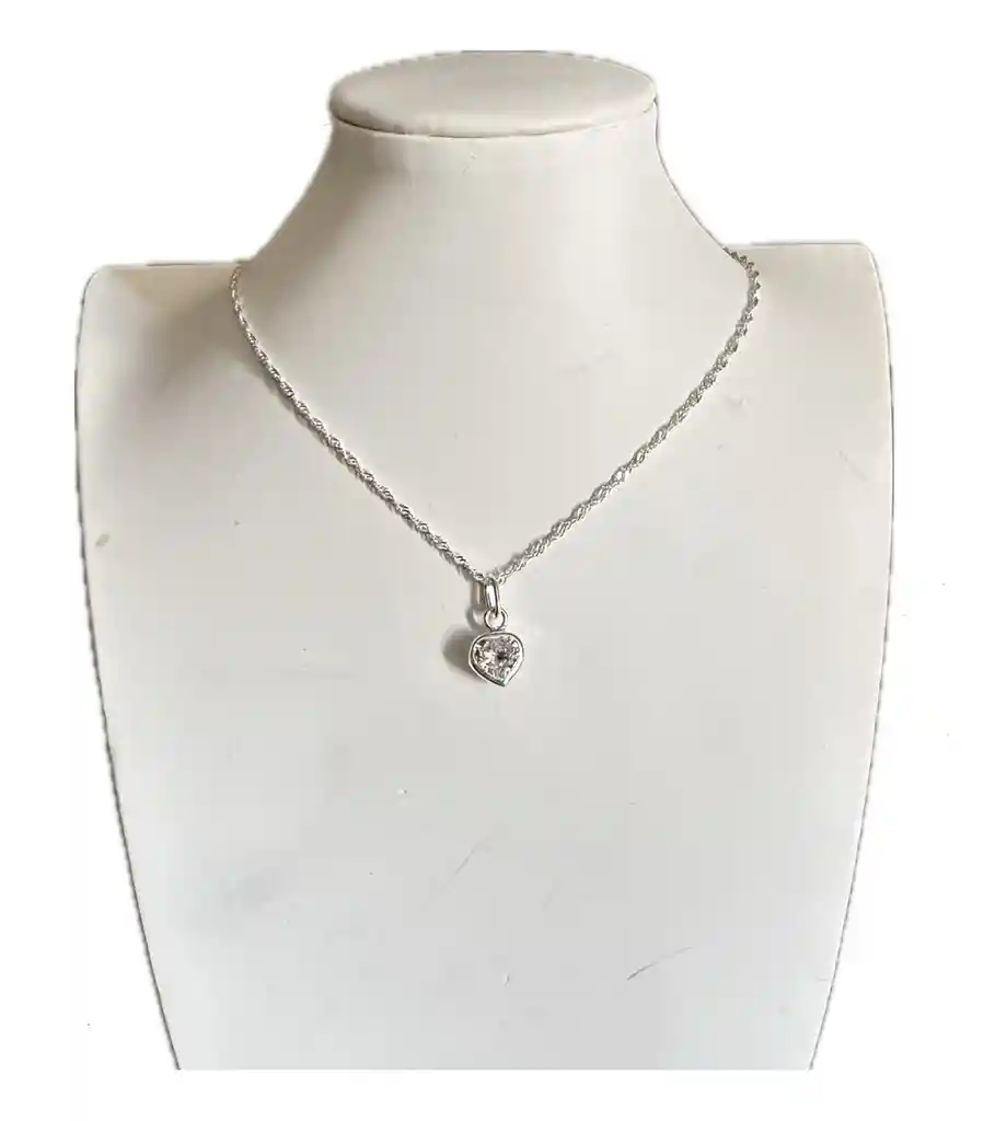 Collar Punto De Luz Corazon Circon Plata 925 + Caja