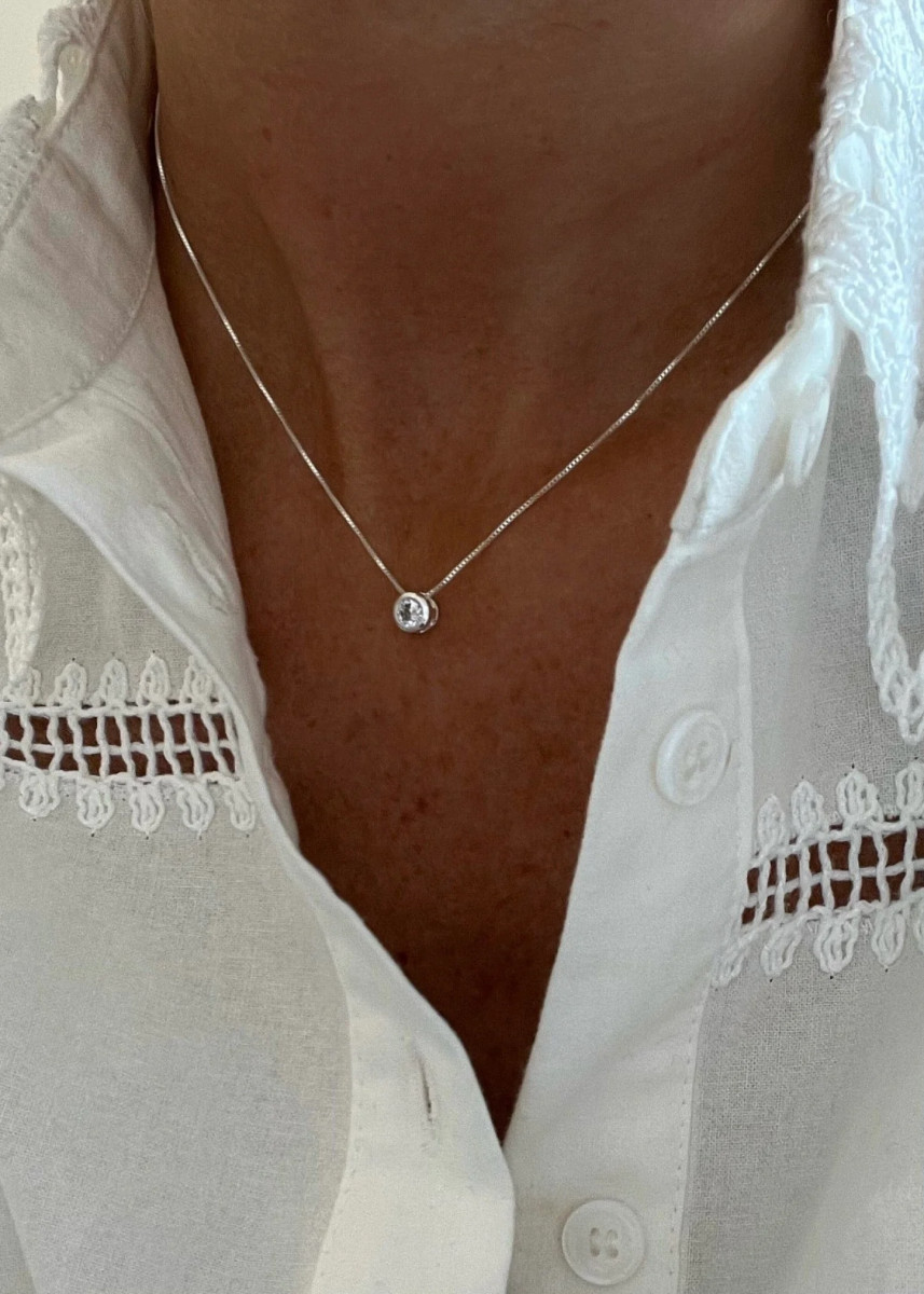 Collar 40 cm de largo y alargue a 45 cm con punto de luz y cadena enchapados en oro 18 kilates o plata libre de níquel. Hipoalergénic