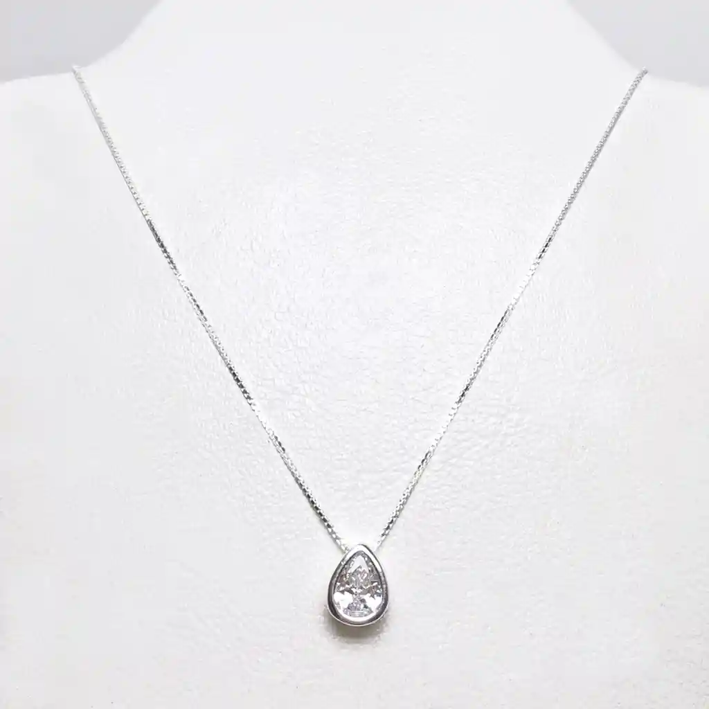 Collar punto de luz gota, fabricada en plata fina ley 925, sólida. El material es hipoalergénico. Su calidad es garantizada y libre de níquel. Sus medidas son 45cm de largo en total de la cadena. La gota es de 9x7mm. Tiene un peso de 2.3 gr.