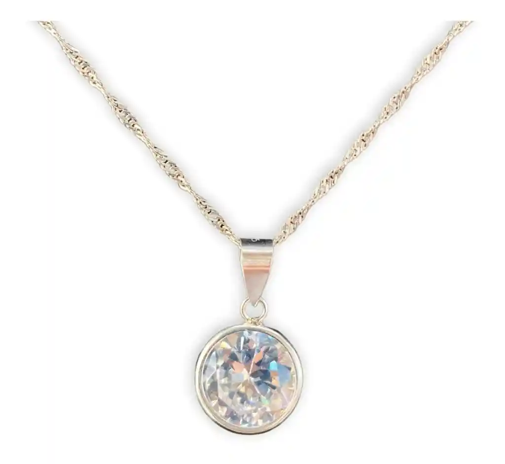 Collar Punto De Luz Grande Elegante Dama Plata 925 Mas Caja De Regalo
