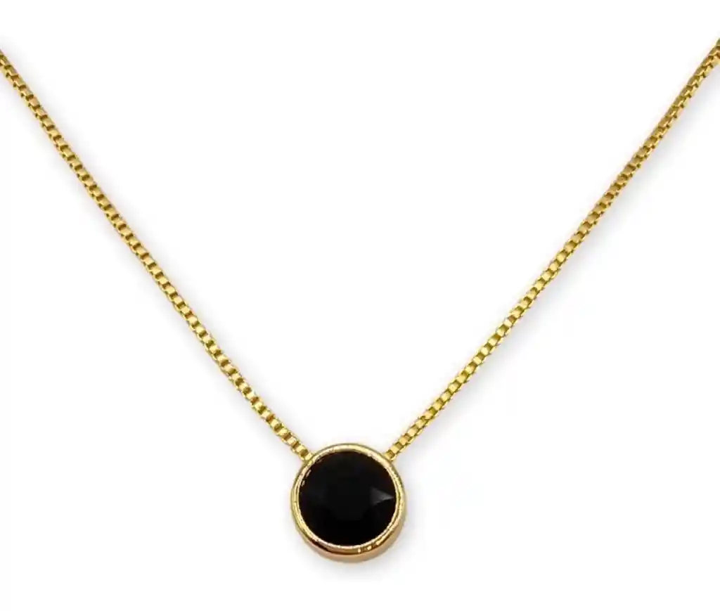 Collar Punto De Luz Piedra Ónix Baño Oro Rosa 18kl Mas Caja