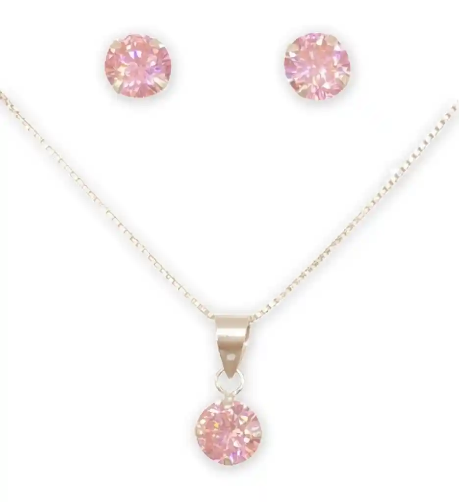 Collar Punto De Luz Rosado Plata Italiana 925 Mas Caja Regalo