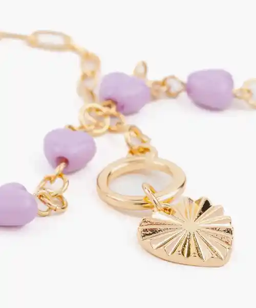 Corto Color Dorado Mitad Con Cadena Simple y la Otra Mitad Con Cadena de Corazones Lila.