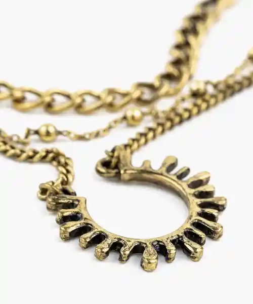 Largo Color Dorado Con 3 Capas Dos de Ellas Don Cadenas y la Última Tiene un Colgante de Sol.