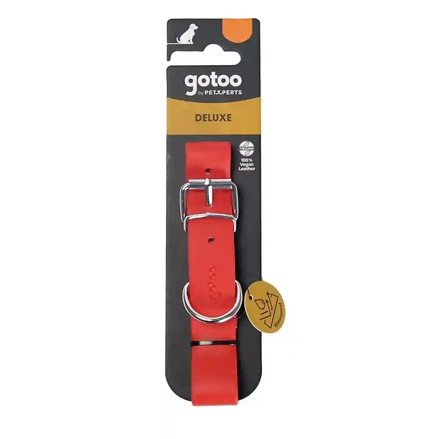El collar rojo Biothane de la colección Deluxe de Gotoo es ideal para los dueños que desean añadir un toque vibrante y atrevido a su perros. Fabricado en piel vegana 100%, asegura que tu perro no solo luzca bien, sino que también se sienta cómodo. Su color rojo intenso es perfecto para destacar, convirtiéndose en el complemento ideal para cualquier ocasión. Gracias a su naturaleza waterproof, este collar de piel para perros es resistente a salpicaduras y lluvias, garantizando durabilidad y estilo. El diseño de este collar rojo cuenta con una hebilla y anilla de hierro cromado, proporcionando un ajuste seguro y fiable. Para el bienestar de tu perro, es crucial asegurar que el collar Biothane se ajuste correctamente, permitiendo la colocación de al menos dos dedos entre el collar y el cuello. Aunque es duradero, el collar de piel debe lavarse a mano para mantener su acabado lujoso. Recuerda, este producto está diseñado exclusivamente para mascotas, y debe ser retirado si se daña. let carouselInner = document.querySelector('.carousel-inner'); carouselInner.insertAdjacentHTML('beforeend', '');