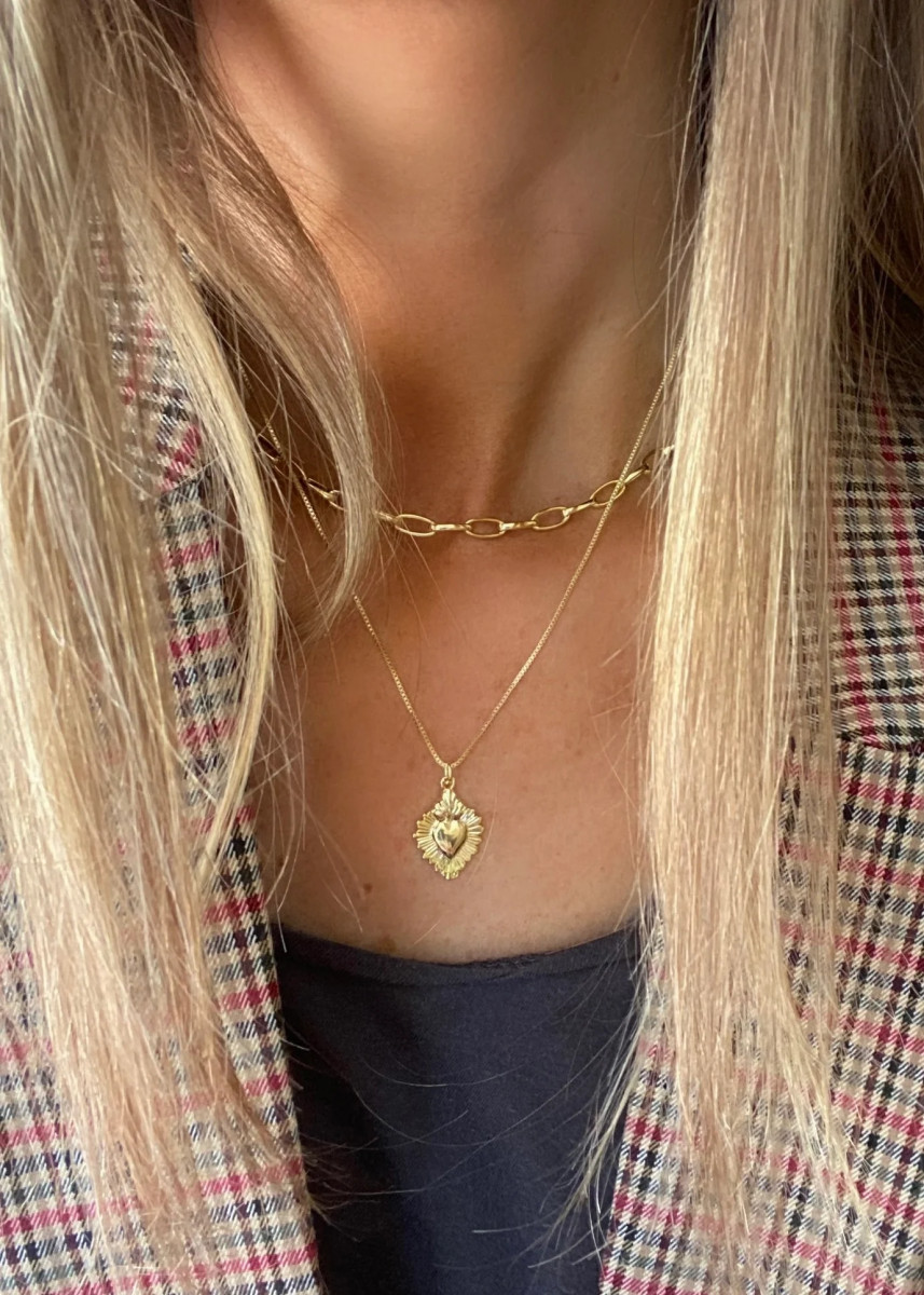 Collar 45 cm de largo con detente de 1.5 x 2 cm, todo enchapado en oro 18K o en plata libre de níquel. Hipoalergénico