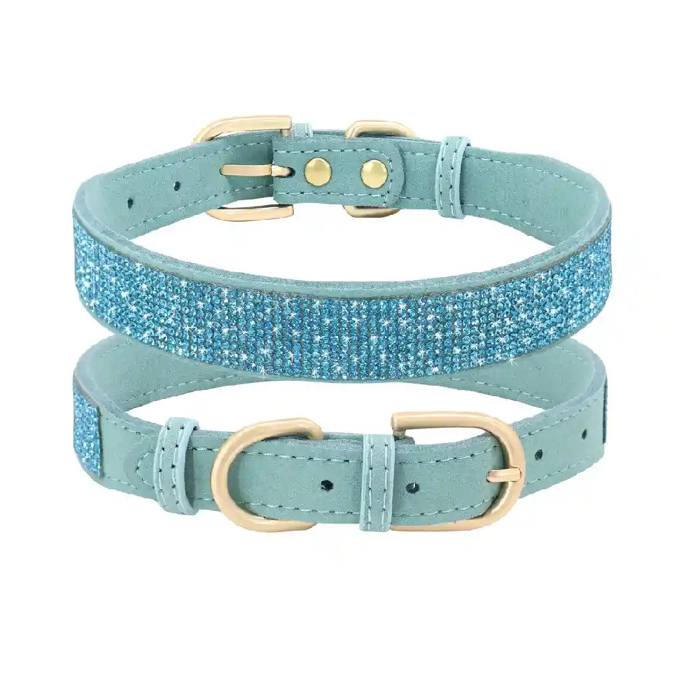 Collar con diamantes de imitación para perro, Collar de piel de ante suave para gato, cachorro, perros pequeños, medianos, gatos, Chihuahua, Yorkshire Talla S : Ancho 1cm; Largo = 35cm ; Ajustable Circunferencia Cuello = 25cm a 31cm