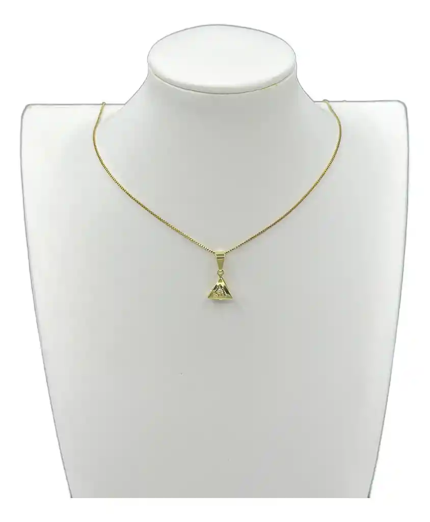 Collar Triangulo Punto De Luz Baño En Oro 18 Kl Mas Caja