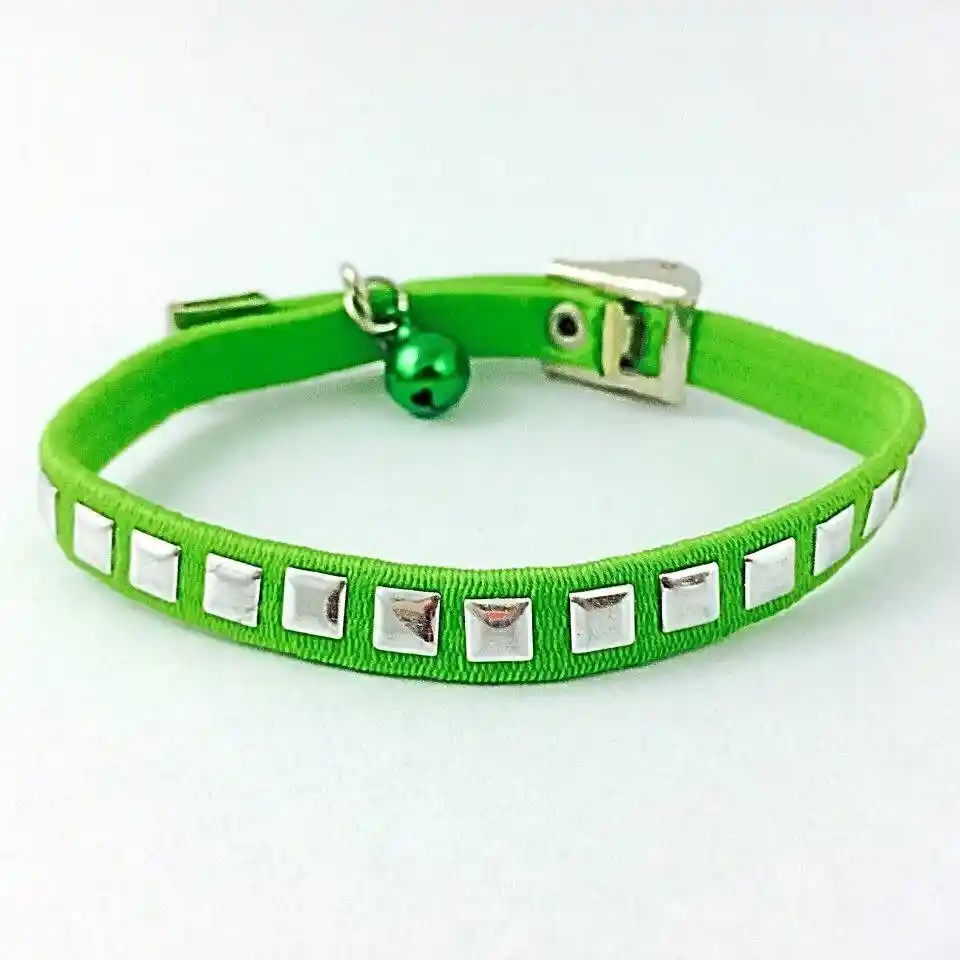 collar para gatos, color verde claro Con tachas estilo pirámide De 28 cm adaptable Para cuellos de 17 a 24 cm