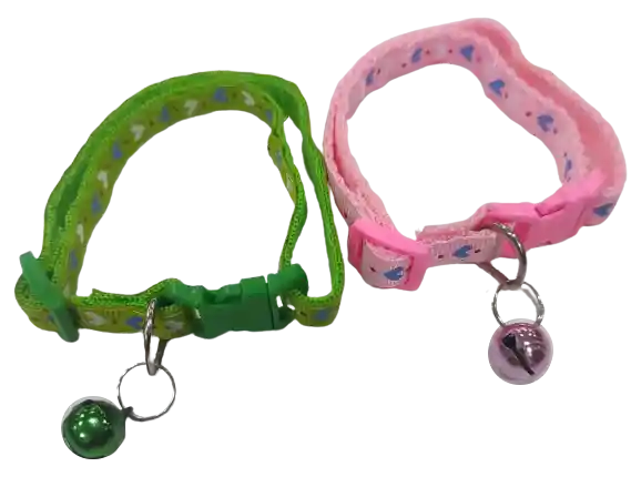 2 unidades de collar para gato. Color rosado y verde, con cascabel. Marca: TATANKA PET