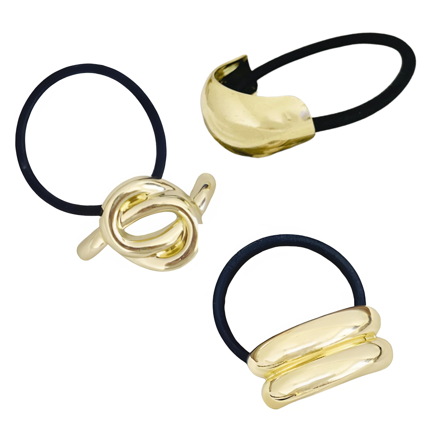 Preciosos collets para el cabello, con detalle de metal dorado. Ideales para cualquier momento del día dando un toque especial a tu cabello. Pack de 3 unidades * Alta durabilidad