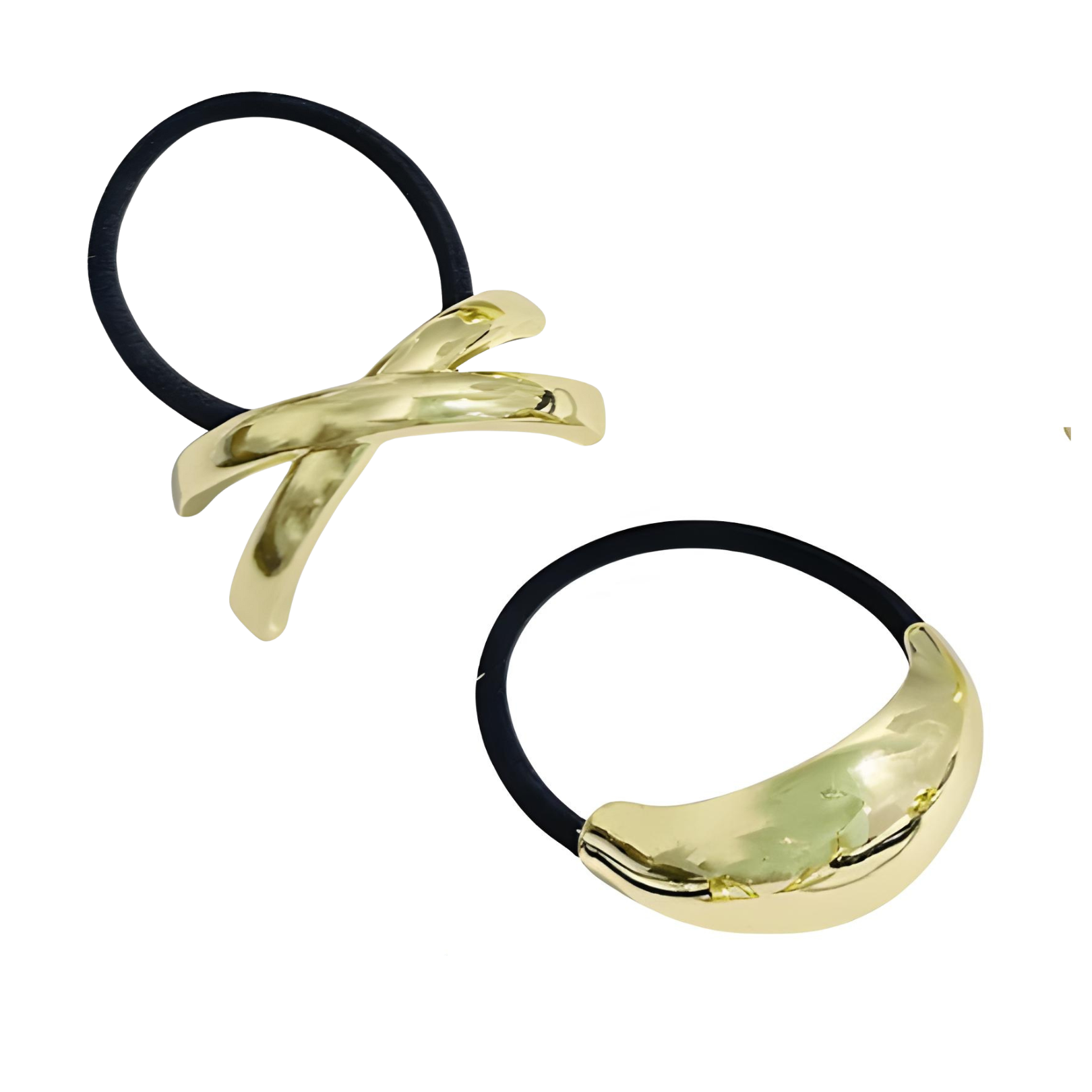 Eleva tu estilo diario con este set de collets para el cabello, perfectas para quienes buscan comodidad y sofisticación. Cada liga cuenta con un detalle dorado metálico de diseño único, ideal para sujetar tu cabello con un toque chic y moderno.