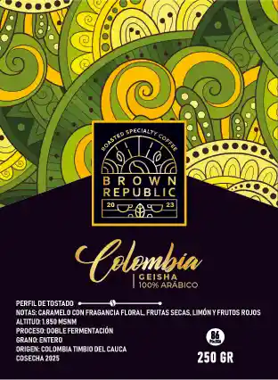 Café de especialidad Origen Colombia Variedad Arábica Geisha Proceso doble fermentación Altura 1850 msnm Puntos 86 SCA Tueste suave alto Cosecha 2025 El café de especialidad Colombia Geisha es una experiencia excepcional para los amantes del café de alta gama. Proveniente de granos Arábica de la codiciada subsepa Geisha, este café presenta un perfil aromático impresionante, con delicadas notas florales que se combinan con el dulzor del caramelo y la complejidad de las frutas secas. La frescura del limón y los frutos rojos aportan un toque vibrante y afrutado. Gracias a su proceso de doble fermentación, este café tiene una acidez alta que le otorga una claridad y frescura inigualables. Con un tostado bajo, su sabor se mantiene suave y limpio, ideal para métodos de extracción como V60 o pour-over, donde se pueden apreciar en su máxima expresión sus complejas notas y su refinada acidez. Un café único y sofisticado, perfecto para quienes buscan una experiencia cafetera de lujo.