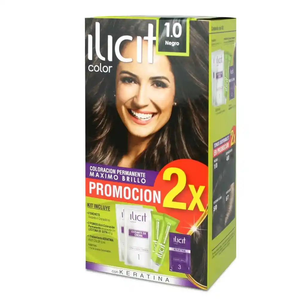 Ilicit Tinte Permanente Capilar en Crema Tono 1.0 Negro