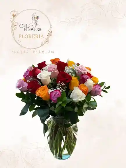 ELEGANTE FLORERO DE 36 ROSAS FRESCAS EN TONOS SURTIDOS, CUIDADOSAMENTE DISPUESTAS PARA CREAR UNA EXPLOSION DE COLOR Y EMOCIONES. PERFECTO PARA CELEBRAR EL AMOR, LA AMISTAD O SIMPLEMENTE PARA LLENAR UN ESPACIO DE BELLEZA Y VIDA. EL COLOR DE LAS ROSAS PUEDE VARIAR SEGUN DISPONIBILIDAD, GARANTIZANDO SIEMPRE UNA COMBINACION ARMONIOSA