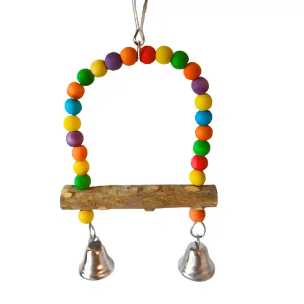 -Los juguetes de entretención proporcionan a tus pájaros un lugar divertido para jugar, masticar, escalar, etc., alivian su estrés, los ayudan a desarrollar su inteligencia y los mantienen saludables. -El columpio está elaborado de madera natural, resistentes y no tóxico para tus mascotas plumíferas -Viene con un gancho de metal en la parte superior, se puede colgar fácilmente en una rama o dentro de una jaula para pájaros. - El columpio además tiene esferas con colores vívidos y dos campanas que llamarán la atención de las aves y los mantendrán entretenidas por horas. Dimensiones: 16 x 12 cm