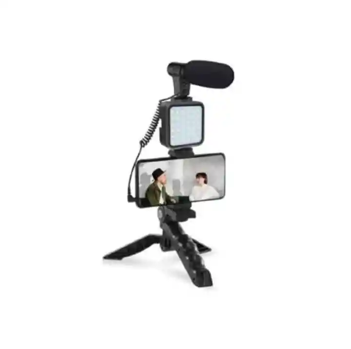 Fotografía de luz Modos de iluminación: 13 Potencia: alrededor de 6w Voltaje de carga: 4.2v Capacidad de la batería: 1200mah Indice de reproducción cromática: alrededor de 95+ Micrófonos Patrón polar: cardioide Respuesta de frecuencia: 35-18khz+/-3db Sensibilidad: -42db+/-1db/0db=1v/pa,1khz Relación señal/ruido: 76db spl Enchufe: conector trs y trrs de 3,5 mm Peso neto: 280g Contenido del paquete: 1 x Trípode 1 x Foco LED Flash 1 x Micrófono 1 x Cable 3,5mm 1 x Soporte universal Smartphone 1 x Control remoto