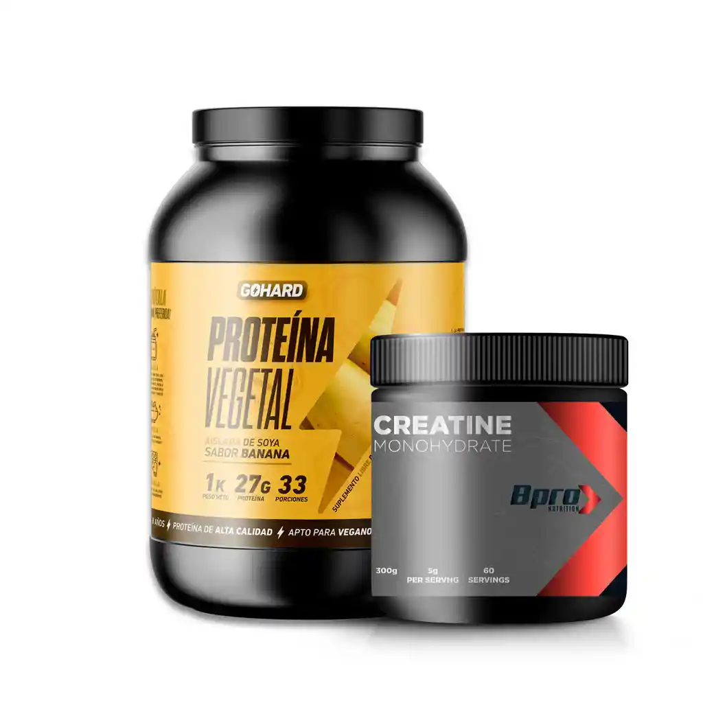 Proteína vegetal 100% orgánica diseñada a base de proteína de soya, refinada y filtrada para obtener una máxima calidad y digestibilidad, Ideal para todas aquellas personas que quieren complementar su dieta con un aporte extra de proteína para aumentar o mantener su musculatura o contextura corporal. Proteína vegetal aislada de Soya que puede ser agregada a tus Smoothies, Panqueques, Mix de frutas, etc. ¡Su buen sabor y texturas te encantarán! Ayuda a mantener y a generar masa muscular. Recuperación posterior al ejercicio. Mayor rendimiento. Contiene 27 gr de Proteína por cada porción. La Proteína Vegetal de Soya ayuda a controlar el Colesterol. Contiene grasas insaturadas que protegen el sistema cardiovascular. Excelente antioxidante. Fácil digestión. Libre de Gluten y Lactosa. Creatina Pura de Alta Calidad (Monohidratada) BPro Nutrition 300g / 60 Porciones / 5g por Porción / Sin Sabor Garantiza un alto rendimiento muscular. Favorecer la hipertrofia muscular. Aumenta la fuerza muscular. Mejora rendimiento en deportes de alta intensidad y corta duración. Favorece la Recuperación.