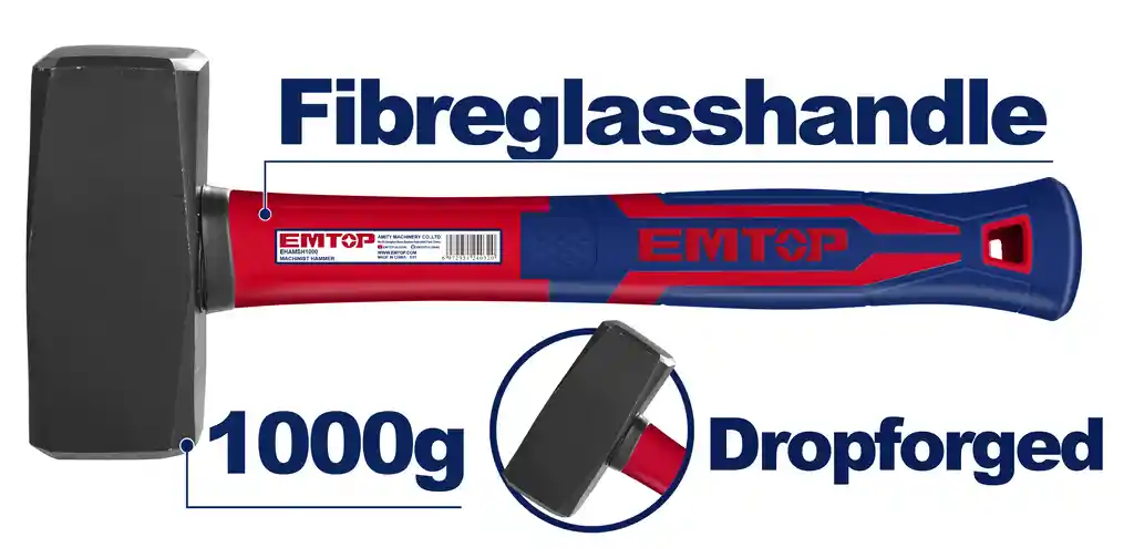 Peso: 1000 g Acero al carbono #45 Martillo forjado con tratamiento térmico Mango de fibra de vidrio Embalado por etiqueta