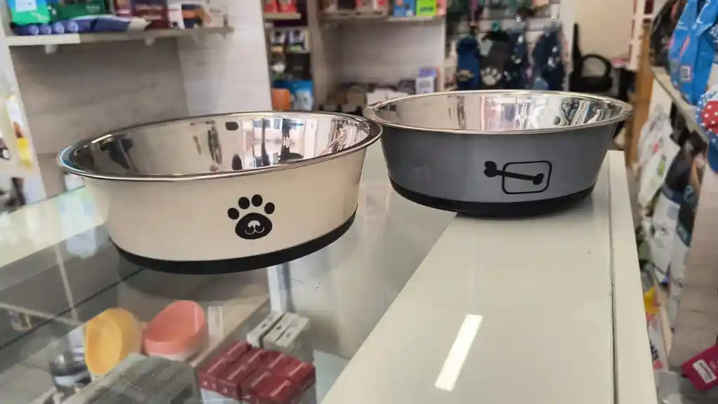 Comedero acero inoxidable con diseño 19 cm L, base antideslizante