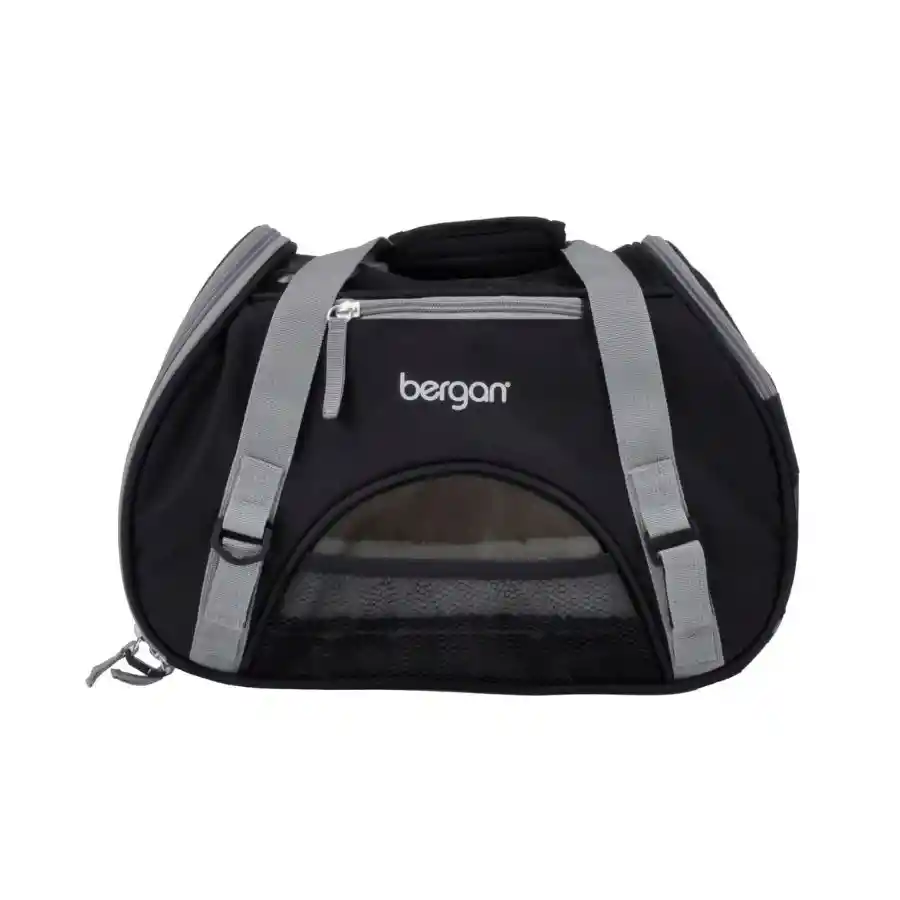 Ayuda a tu mascota a viajar comodamente con el Bergan Comfort Carrier! El disentilde;o practico del portabebes elimina el estres de viajar. Los paneles de malla permiten la maxima transpirabilidad y la correa ajustable facilita su transporte sobre la marcha. Ademas, el portabebes viene con una cama de viaje de forro polar lavable para una comodidad acolchada. El Comfort Carrier tiene un Seat-Belt Loop de seguridad probada para asegurar el portabebes en el automovil, y su disentilde;o tambien es compatible con las aerolineas. Lleva este portabebes contigo en el auto o en el avion para que tu mascota viaje sin estres!