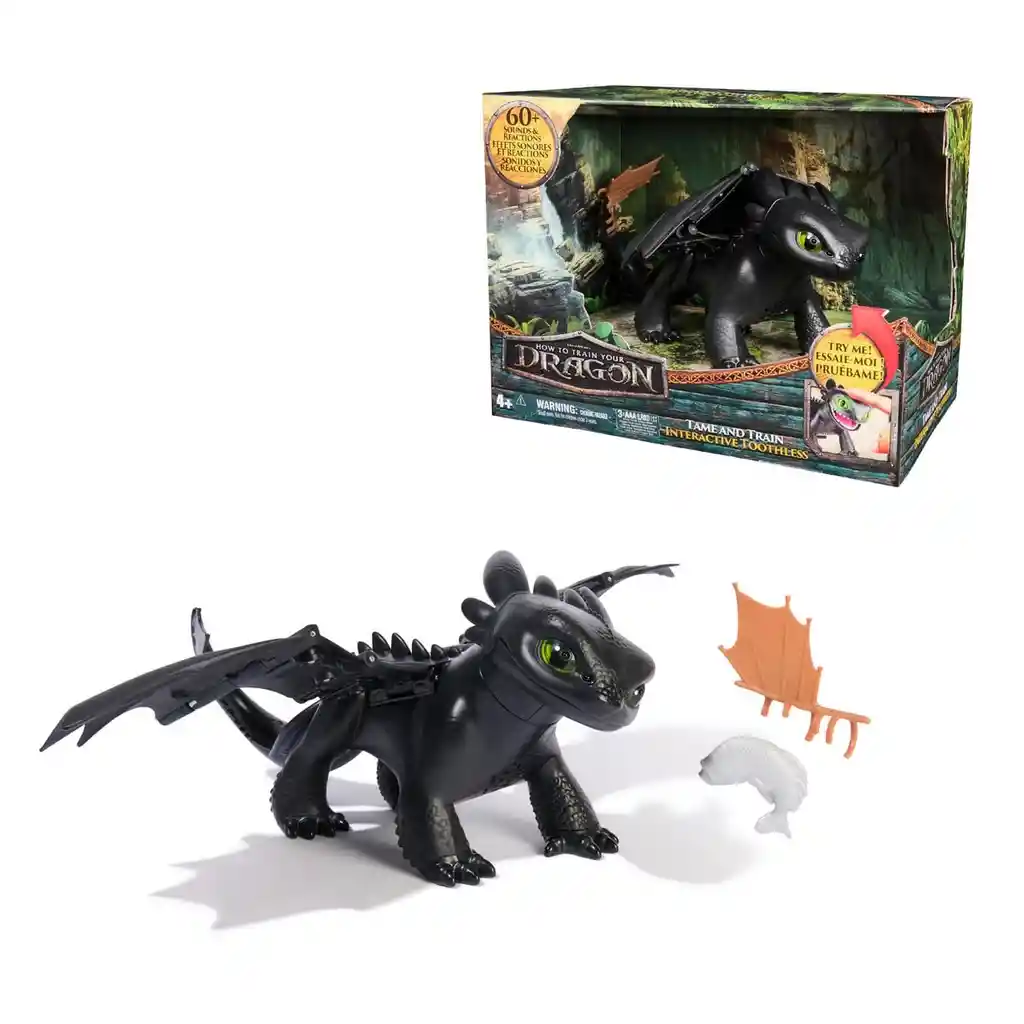 Lleva la aventura de Cómo Entrenar a tu Dragón con “Chimuelo”. Abre el embalaje "jaula" para dar la bienvenida a tu propio Dragón Furia Nocturna “Chimuelo”. Gana su confianza sosteniendo su refrigerio favorito, el pescado incluido, mientras se bloquea y rastrea los peces y tus movimientos. Haz crecer tu vínculo con él a medida que pasa de salvaje a domesticar con 5 personalidades diferentes. Desbloquea juegos con Chimuelo como "mantente alejado", "sígueme" y "pollo" para descubrir más reacciones y sonidos de Furia Nocturna. Logra el vínculo final para presenciar su ataque de plasma con alas de 50 cm cargadas por resorte y ojos azules parpadeantes. Levanta Furia Nocturna para sonidos de vuelo con tu dragón recién unido. Utiliza 2 pilas AAA, incluidas.