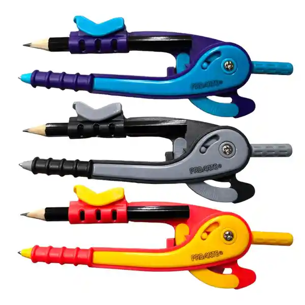 Compás de plástico con punta de seguridad ideal para trazar círculos y arcos en tareas escolares y proyectos de geometría. Diseño seguro y fácil de usar para estudiantes. COLOR SE ENVÍA ACORDE A DISPONIBILIDAD