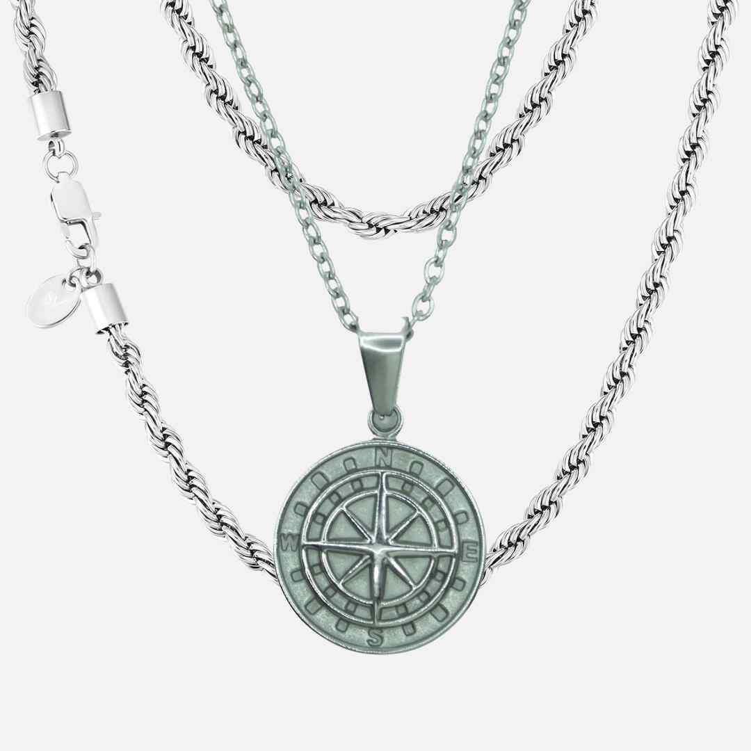 Características✓ Acero inoxidable 316L✓ Rodio✓ Resistente al agua, sudor y calor✓ Hipoalergénico (sin piel verde)Incluye:- Compass (20mm x 20mm)- Cadena Rope 4mm 50cm