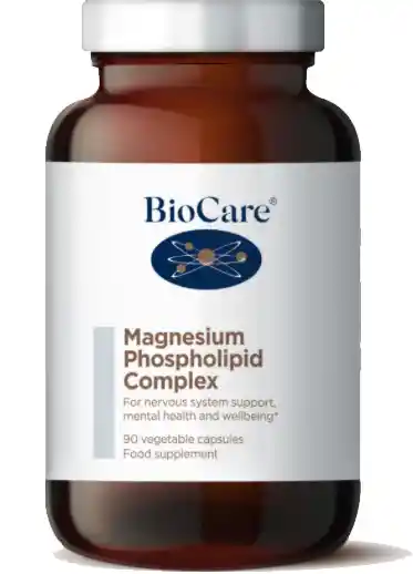 Complejo de fosfolípidos de magnesio es una combinación única de magnesio y fosfatidilserina de lecitina de girasol orgánica (Sharp-PS Green®) que proporciona 300mg de magnesio en una combinación de bisglicinato y citrato de óptima absorción. Especialmente útil para dar apoyo al sistema nervioso, manejo de estrés, ansiedad, insomnio, depresión, problemas de memoria, cognición, falta de energía y problemas neurológicos. Información Sharp-PS Green® es una forma avanzada que proporciona fosfatidilserina, un fosfolípido que se encuentra en altas concentraciones en el interior de las células, especialmente las del tejido nervioso. La fosfatidilserina apoya la fluidez celular, la respuesta de los neurotransmisores y los niveles de acetilcolina (fundamentales para la memoria y la función cognitiva). Ayuda a manejar los niveles de cortisol en respuesta al estrés o durante el ejercicio de resistencia. Ingredientes Ingesta Diaria Importante Citrato de magnesio, bisglicinato de magnesio Cubierta de la cápsula (hidroxipropilmetilcelulosa) Lecitina de girasol orgánica (Sharp-PS Green®) 1 cápsula tres veces al día con alimentos o según indicación profesional (Suministro para 30 días al consumir 3 cápsulas diarias)