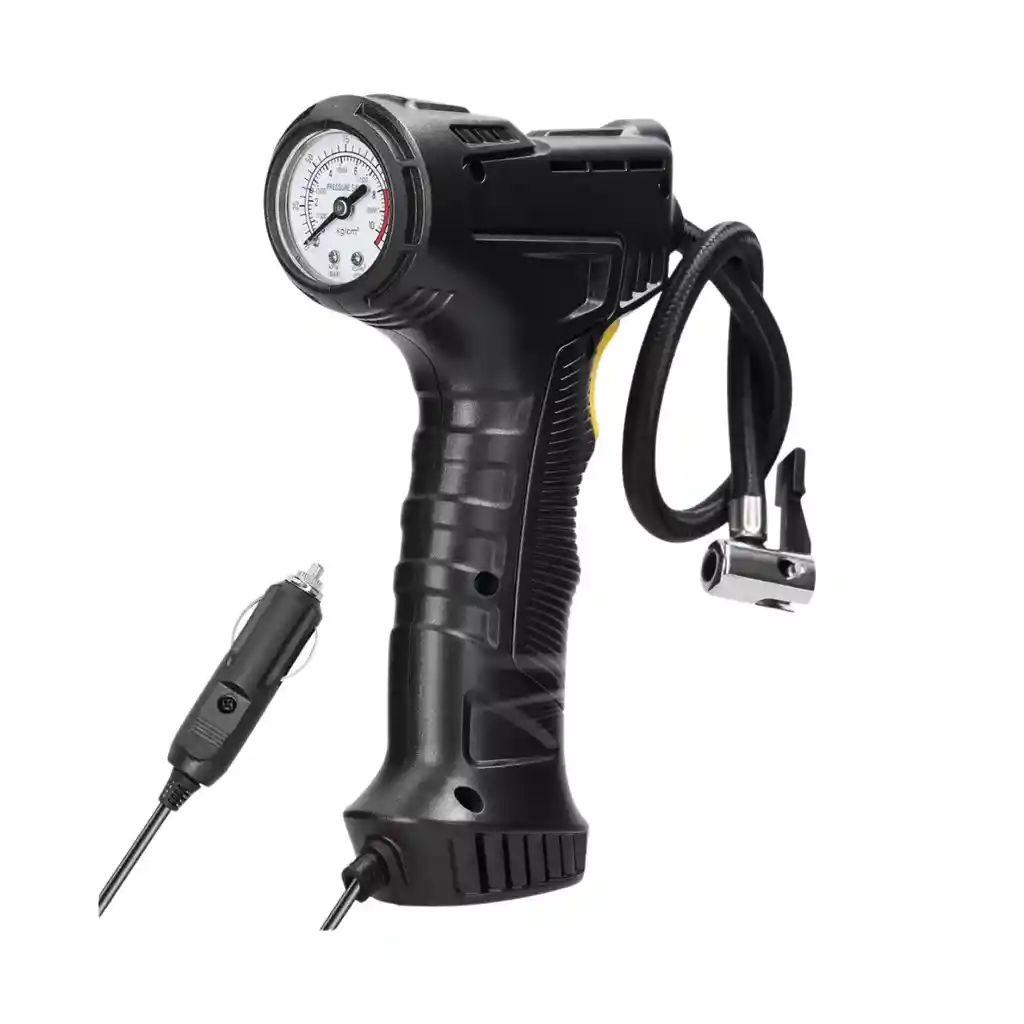 Compresor Portátil 12v 120w Para Inflar Neumáticos De Auto Color Negro - 212066' es una bomba de aire de mano que permite inflar rápidamente neumáticos o bolas. Su manejo es sencillo y su uso intuitivo gracias a su indicador mecánico, que permite leer la presión del neumático y monitorear su estado en tiempo real. Este compresor está equipado con una luz LED de alto brillo, que facilita su operación incluso en condiciones de poca luz. Su cilindro metálico garantiza un rendimiento estable, una rápida disipación de calor y una reducción de ruido. Fabricado en ABS de alta calidad, este compresor es duradero y resistente. Su mango está diseñado ergonómicamente para un agarre cómodo.