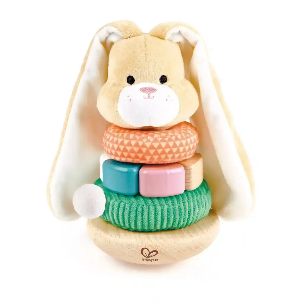 Este simpático conejo apilable es un juguete perfecto para niños de todas las edades. Está fabricado con materiales de alta calidad, como madera de haya y tejido suave, lo que lo hace seguro y duradero. Este juego viene con una robusta base de madera de haya, tres coloridas anillas y un conejo de peluche. Las anillas se pueden apilar en la base de madera en diferentes combinaciones, lo que permite a los niños desarrollar su creatividad y habilidades motoras finas. El conejo de peluche se puede colocar encima de las anillas para crear una divertida figura apilable. Sin duda, este es el regalo perfecto para todos aquellos niños a los que les gustan los animales y los juguetes educativos, enseñándoles a aprender a apilar, clasificar y desarrollar su imaginación.