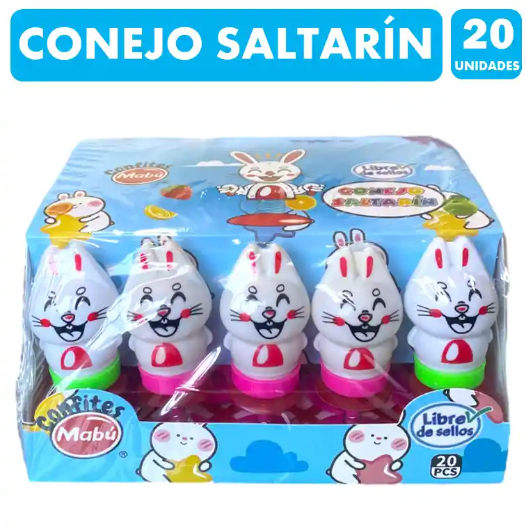 Exquisito y entretenido conejo saltarin de mabú. En este producto vienen 20 unidades de conejitos.