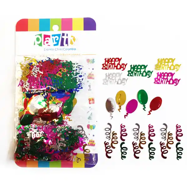 CONFETI MESA TRIPLE "HAPPY BIRTHDAY" GLOBO