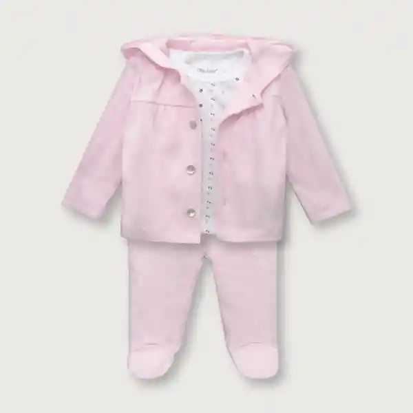 Conjunto Opaline Contiene 3 Unidades. Polera Manga Larga Con Estampado de Flores Cuello American Con Polerón y Color Rosado 100% Algodón.