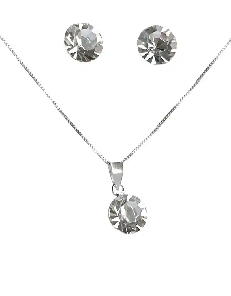 Conjunto Collar Aros Colgante Punto Luz Swarovski + Caja