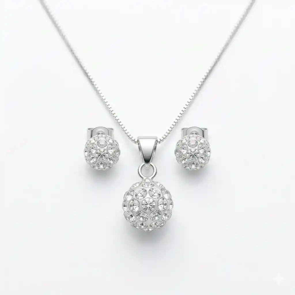 Ilumina tu rostro con el brillo inconfundible del cristal. Este conjunto de joyería combina la sofisticación de la Plata de Ley 925 con el destello multifacético de las esferas de strass, creando un equilibrio perfecto entre lo clásico y lo moderno. Especificaciones: -Material de Calidad: Cadena y monturas elaboradas en Plata de Ley 925 con sello de autenticidad. - Medidas Collar: 45cm - Presentación: incluye caja elegante, ideal para regalar. - Estilo: femenino y atemporal Ya sea para un aniversario, una graduación o un detalle especial, este conjunto viene listo para impresionar. Su diseño coordinado elimina la duda de cómo combinar tus accesorios, ofreciendo un look pulido y brillante al instante.