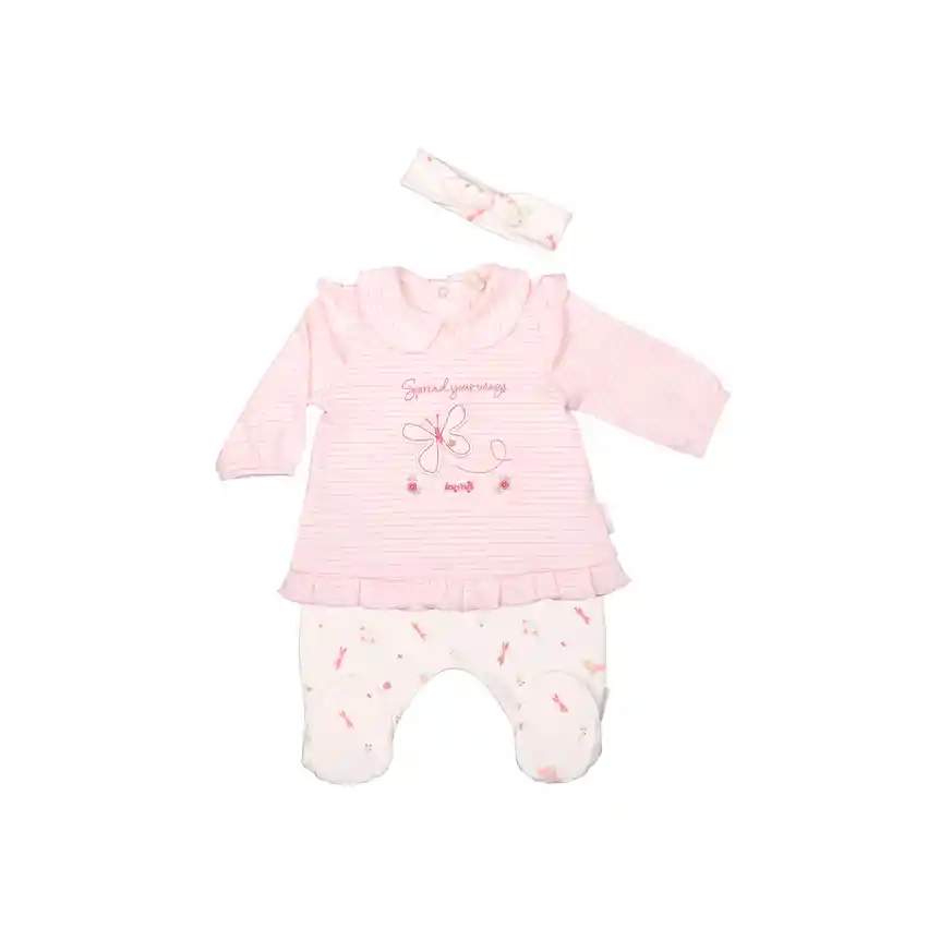 Conjunto Con Cintillo Garden Niña Infanti. El Conjunto Garden Niña de Infanti es la elección perfecta para vestir a tu pequeña con estilo y comodidad. Este set de tres piezas incluye una polera de manga larga, un panty y un cintillo, todo diseñado con un enfoque en la suavidad y la transpirabilidad del algodón, ideal para la delicada piel de los bebés. Cada pieza ha sido cuidadosamente elaborada para ofrecer un ajuste cómodo y una gran libertad de movimiento, permitiendo que tu niña explore y juegue sin restricciones. Los colores y estampados del conjunto evocan la frescura de un jardín, aportando un toque alegre y encantador a su vestuario. Este conjunto es ideal para ocasiones especiales o para el uso diario, garantizando que tu pequeña luzca siempre adorable. Además, su diseño versátil permite combinarlo fácilmente con otras prendas, creando diferentes looks para cada día.