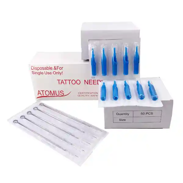 Caja de 100 Agujas Mixtas para Tatuaje DESCRIPCIÓN: Una gran variedad de herramientas de tatuaje para usuarios principiantes y avanzados. caracteristicas: Incluye 3RL / 5RL / 7RL / 9RL / 3RS / 5RS / 7RS / 9Rs / 5M1 / 7M1 agujas de tatuaje (10 piezas para cada tipo) y 3RT / 5RT / 7RT / 9RT / 5FT / 7FT / 3DT / 5DT / 7DT / 9DT cartuchos de agujas de tatuaje (10 piezas por cada tipo). 100 piezas de agujas de tatuaje mixtas y cartuchos de agujas de tatuaje que satisfacen diferentes necesidades ideal para salón de tatuajes. Hecho de acero inoxidable de primera calidad y material plástico ABS no es fácil de oxidar desechable seguro de usar. Envasadas individualmente en bolsas de polietileno selladas estas agujas y cartuchos son portátiles. Tienen una longitud estándar compatible con la mayoría de las máquinas de tatuaje. Material: acero inoxidable plástico ABS Color: plata + azul Tamaño del artículo: Cartuchos de agujas de tatuaje: aprox. 4.8 * 0.8cm / 1.89 * 0.31in Tamaño del paquete: aprox. 18.5 * 16.5 * 7 cm / 7.28 * 6.5 * 2.76in Peso del paquete: aprox. 468 g / 16 51 oz Lista de paquetes: 100 * agujas de tatuaje 100 * cartuchos de agujas de tatuaje.