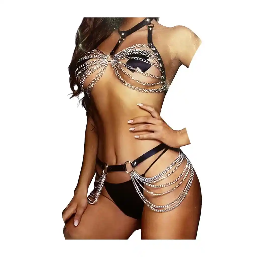 Luce Sexy, Atrevida y con Poder, este Arnés con cadenas lo puedes usar tanto en tu intimidad o como complemento de tu outfit y destaca a donde vayas Características * Arnés superior con cadenas y broches ajustables * Arnés de Cintura con Cadenas y broches ajustables * Se recomienda para las personas que sean tallas S - M - L **** NO Incluye Colales, Brasier ni pezoneras ****