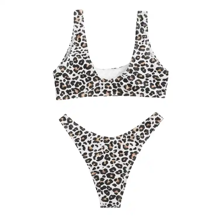 Con un estilo atrevido y seductor, este conjunto de bikini de corte alto combina la moda animal print con un diseño moderno y cómodo, perfecto para destacar en la playa o la piscina. Características principales: Color: Multicolor con estampado de leopardo. Estilo: Sexy y contemporáneo, ideal para quienes buscan una opción llamativa y de tendencia. Tipo de fondo: Corte alto, que estiliza las piernas y ofrece un ajuste favorecedor. Tipo de sujetador: Sin aros, para una mayor comodidad sin sacrificar soporte. Escote: Redondo, elegante y moderno. Especificaciones técnicas: Tela: De alto estiramiento, lo que asegura un ajuste cómodo y flexible para todo tipo de movimiento. Material: 82% poliéster, 18% elastano. Almohadilla para el pecho: Acolchado extraíble, permitiendo un ajuste personalizado. Cuerpo: Sin forro, ofreciendo una sensación ligera y fresca. Instrucciones de cuidado: Lavar a máquina. No limpiar en seco para preservar la calidad del tejido y el color. TALLA XL - Largo de Top: 29 cm, Largo del bottom: 24 cm, Pecho: 102 cm, Contorno cintura: 86-110 cm