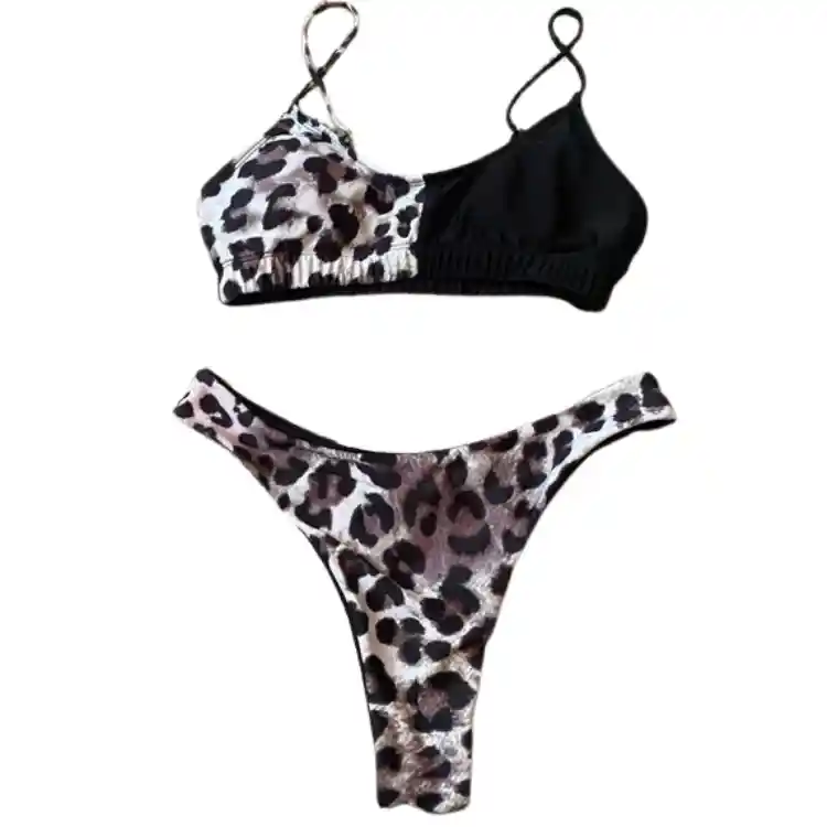 Este conjunto de bikini presenta un estilo tipo recto en la parte superior, brindando un soporte óptimo sin comprometer el estilo. Su estampado animal print añade un toque salvaje y moderno, perfecto para aquellas que buscan un look llamativo. Con tirantes ajustables y una parte inferior de corte clásico, este bikini es tanto cómodo como chic, adaptándose a diferentes tipos de cuerpo. Características Destacadas: Estilo Tipo Recto: La parte superior de corte recto proporciona un soporte ideal y un look elegante, ideal para quienes prefieren un estilo más sencillo pero atractivo. Estampado Animal Print: Un diseño moderno y atrevido que aporta un toque de originalidad y sofisticación a tu atuendo de playa. Tirantes Ajustables: Permiten un ajuste personalizado, brindando mayor comodidad y soporte. Parte Inferior de Corte Clásico: Ofrece un ajuste seguro y cómodo, ideal para disfrutar de actividades acuáticas con confianza. Vedetina. Material de Alta Calidad: Confeccionado en tejidos suaves y duraderos, resistentes al agua y al cloro, lo que asegura una larga vida útil. TALLA M - Pecho:87-91cm, Cintura:67-71cm, Cadera:92-96cm