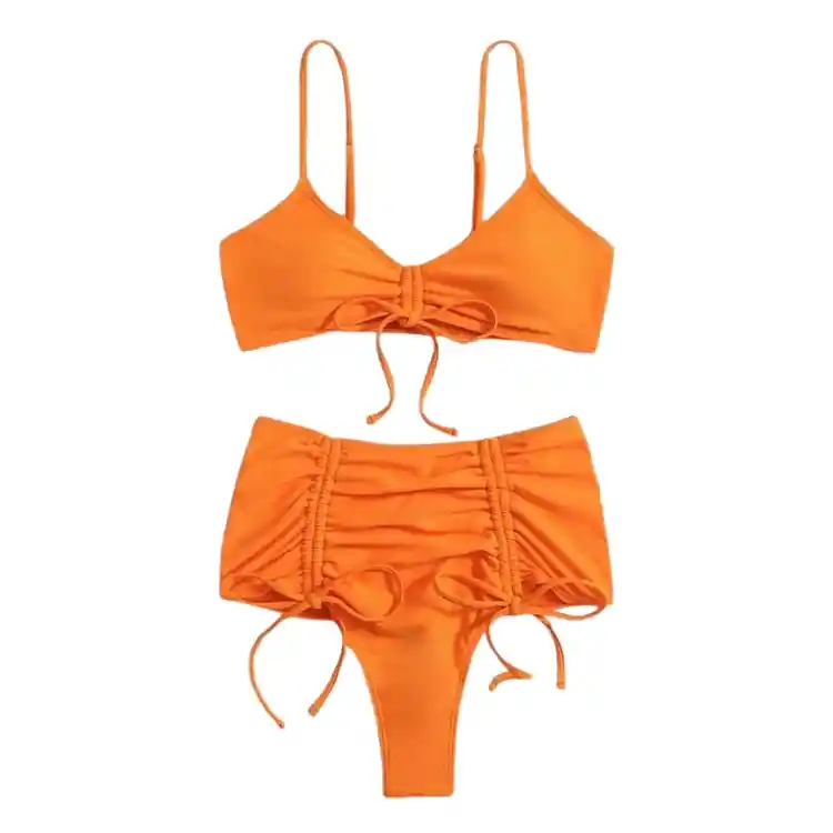 Bikini con cordones ajustables, diseñado para un ajuste cómodo y a la moda. Este conjunto de dos piezas de cintura alta ofrece un estilo moderno y atractivo, perfecto para el verano. Características principales: Tipo de patrón: Liso. Tipo de fondo: Cintura alta, que estiliza la figura y ofrece mayor cobertura. Tipo de sujetador: Sujetador sin aros, ideal para mayor comodidad. Escote: Tirantes finos, ajustables para un mejor ajuste. Detalles del conjunto: Número de piezas: Conjunto de 2 piezas (top y bottom). Almohadilla para el pecho: Acolchado extraíble para personalizar el soporte. Especificaciones técnicas: Tela: Alto estiramiento para mayor comodidad y libertad de movimiento. Material: 80% poliamida, 20% elastano en la parte superior e inferior del bikini. Forro: El bikini está completamente forrado para mayor seguridad y confort. Instrucciones de cuidado: Lavado a máquina o limpieza en seco profesional. TALLA M