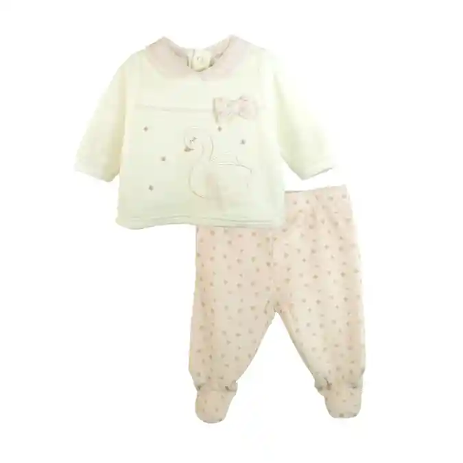 Hermoso conjunto de plush con diseño de cisne, que brinda suavidad, calor y protección absoluta en días fríos para el recién nacidos y bebés más grandes. Este conjunto es un refugio de bienestar y un bonito regalo para los bebes de la casa. Polera manga larga con diseño de cisne, Perfectamente adaptada para los primeros días del bebé. Cuello redondo. Plush muy cálido. Broches en la parte trasera para vestir a la bebé cómodamente. Pantalón con patitas para mayor calidez y confort de tu bebé