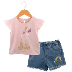 Conjunto de short de jeans y polera rosada con divertido diseño Ideal para un look fresco