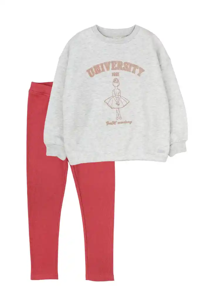 Conjunto kids niña academy 312 Talla: 2 años Género: Niña Modelo :Academy Composición: Top: 80% Algodón 20% Poliéster/ Pant: 96% Algodón 4% Elastano Garantía: 6 meses Cuidados de la prenda: Lavado con agua a tº máxima de 30º. No blanquear. No dejar en remojo. No secar a máquina. No planchar sobre aplicación