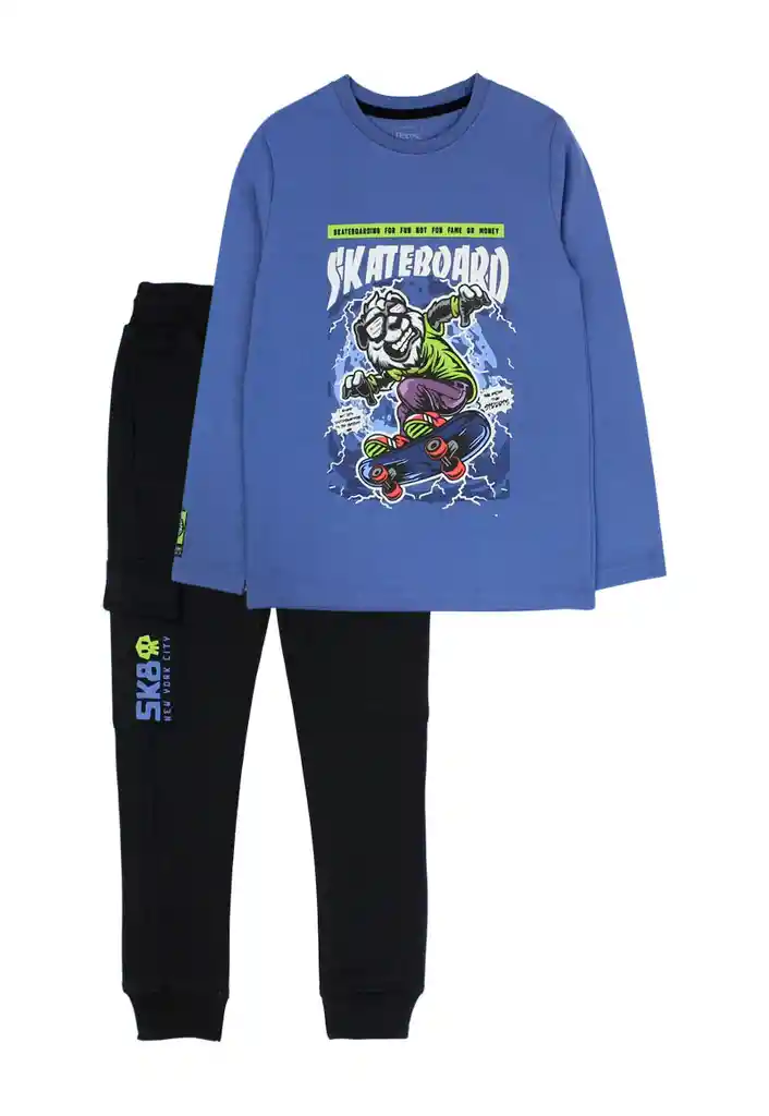 Conjunto kids niño move 258 Talla: 6 años Género: Niño Modelo :Move Composición: 80% Algodón 20% Poliéster Garantía: 6 meses Cuidados de la prenda: Lavado con agua a tº máxima de 30º. No blanquear. No dejar en remojo. No secar a máquina. No planchar sobre aplicación