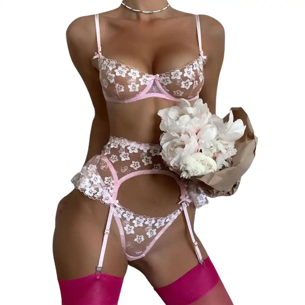 Hermoso conjunto sexy color rosa de nuestro catalogo 2023 Jenylove Tallas disponibles: M y L Incluye: Calzon, Sosten, Portaliga