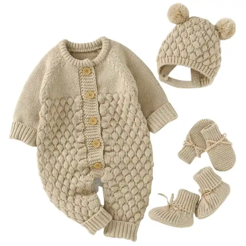 Hermoso conjunto tejido de alta calidad, calentito ideal para el tiempo de frio que ahora comienza. Incluye Enterito u osito, guantes, gorro y zapatitos. Por lo que es un regalo ideal para babyshower, o ese bebé en camino ❤ Características Color: Beige Tipo de Estampado: Liso Detalles: Botón delantero Escote: cuello redondo Longitud de la Manga: manga larga Línea del Talle de la Cintura: Natural Longitud: Largo Tipo de ajuste: Regular Tejido: Elástico Ligero Material: Tejido lana Instrucciones de Cuidado: lavadora o limpieza en seco profesional Forro: Sin Forro Transparente: No Detalle de tallas: Talla: 0- 6 meses Largo: 54 cm Largo de la manga: 30 cm Pecho: 56 cm Contorno caderas: 61 cm ❤Todos nuestros pedidos van siempre en presentación regalo listos, con una tarjeta para dedicar =) ❤