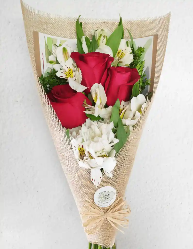 Hermoso y delicado cono de rosas rojas importadas más alstromelias. de color Rojo ideal para sorprender con amor ❤️
